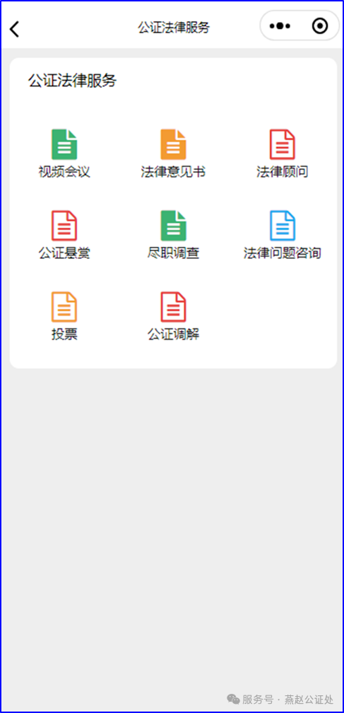 ·国内公证事项同样采用九宫格展示,分类清晰: