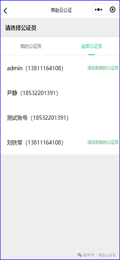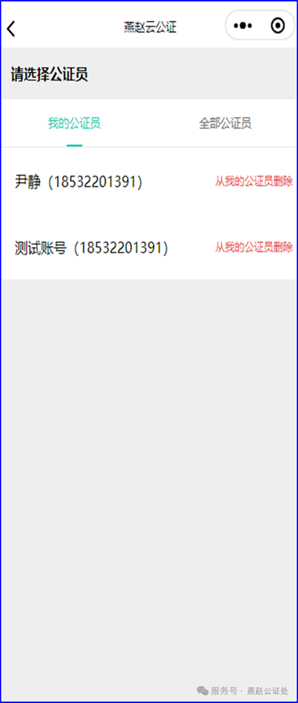 快速选择:可将熟悉或信赖的公证员加入“我的公证员”列表,下次办理一键直达。