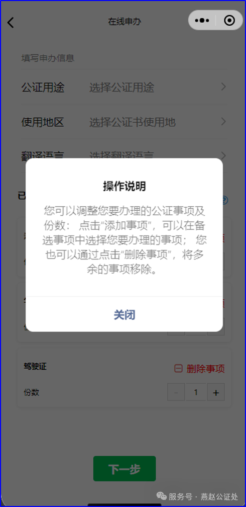 灵活增减:已选事项可随时添加或删除,自由调整每项公证的份数,满足个性化需求。